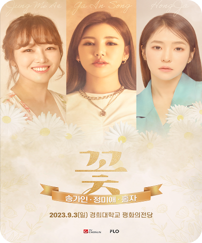 미스트롯의 주역이죠. 송가인, 정미애, 홍자가 3년 만에 한 무대에 섭니다. 경희대 평화의 전당에서 콘서트 <꽃>으로 다시 뭉친 건데요. 추석 특집으로 TV조선 방영 예정이기도 한 콘서트 <꽃>. 빠른 예매 하셔서 생생한 감동의 무대를 함께 하시기 바랍니다.